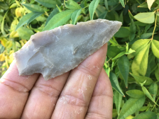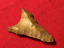 Out of Lyle Nickols Collection, this Paleo Knife has steep right hand bevels with a flattened cross section and fine flaking. It has river patina and a slightly concave base with a slight ancient nick on one corner of the base. I have the shipping and it comes with a Bill German COA.