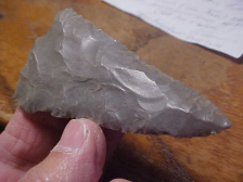 The last owner gave the provenance of this Adena as being south central Kentucky--assuming the Woodland point is a much heat-treated Boyle Chert, that'd fit--in a way you want to call the material a form of Flint Ridge, but if the 'given provenance' is correct that'd be out of Flint Ridge's distribution range. Length is 2&9/16" by 1&3/16", the stem edges are heavily ground. There is light wear on tip and on the points of the barbs--just minor use. Back-lighted, the flint is somewhat translucent--photo will show that. Patina is excellent, guaranteed authentic in every detail. Shipping is $8.00 with checks or M.O.s welcomed. Sorry, I do not take paypal--Roy A.