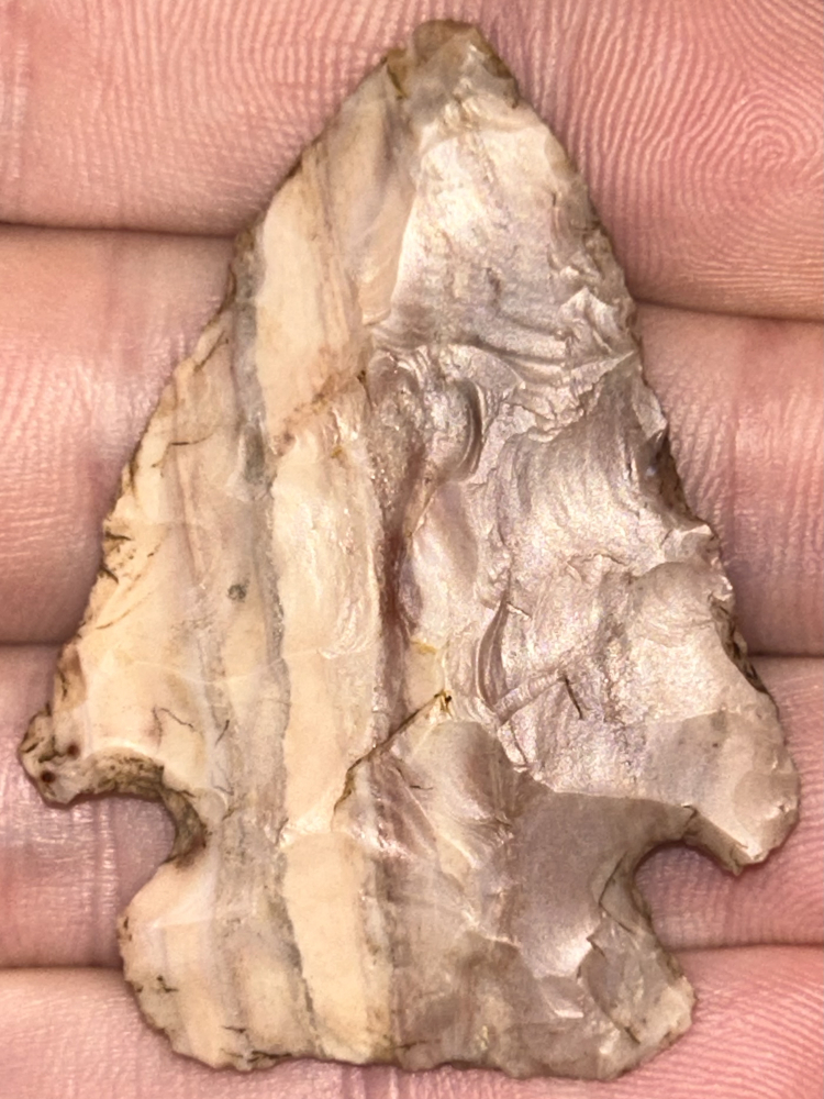 A nice Big Creek found in Boone County, Missouri. Made from beautifully colored heat treated Burlington chert. Very thin and well made.