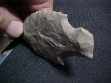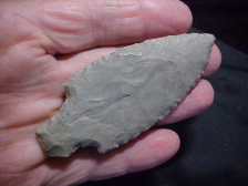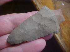 A very long Adena square stemmed Robbins type, Indiana Hornstone, found in Knox County, Indiana--length is a strong 3&7/16" by 1&3/8", but the blade thickness stays at 5/16", each face fairly flat. The patina is easily seen, every detail is guaranteed authentic. Note that the stem is also fairly thick, a slight stack on one corner of the stem proved impossible to thin--a flat flake was left as-is so as to not break the stem with "one more hit"--the Adena knapper knew when it was time to stop, use a "I'll work with it" approach. Give him credit. Shipping is $8.00, well packed, and payment is welcomed by check, cash, or M.O.. Sorry, I do not use paypal-type services--Roy A.