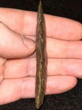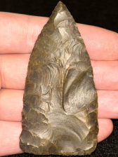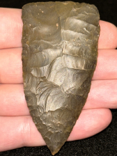 A fantastic Archaic blade found in McCracken County, Kentucky. Made from beautifully water patinated Hopkinsville chert. Well made with nice flaking and symmetry. Ex: Chris Barnard.