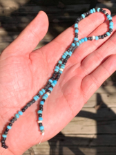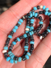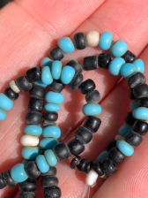 Mostly blue and black with some white beads
