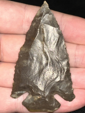 A fine Kirk found in Meade County, Kentucky. Made from beautiful blue-grey Hornstone with two neat translucent spots in the point. Extremely thin and well made with great style.