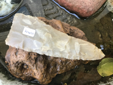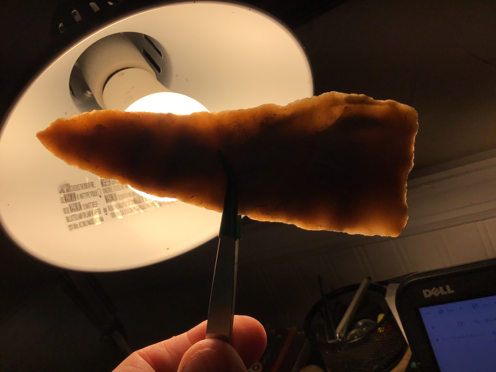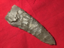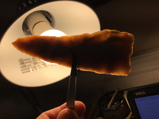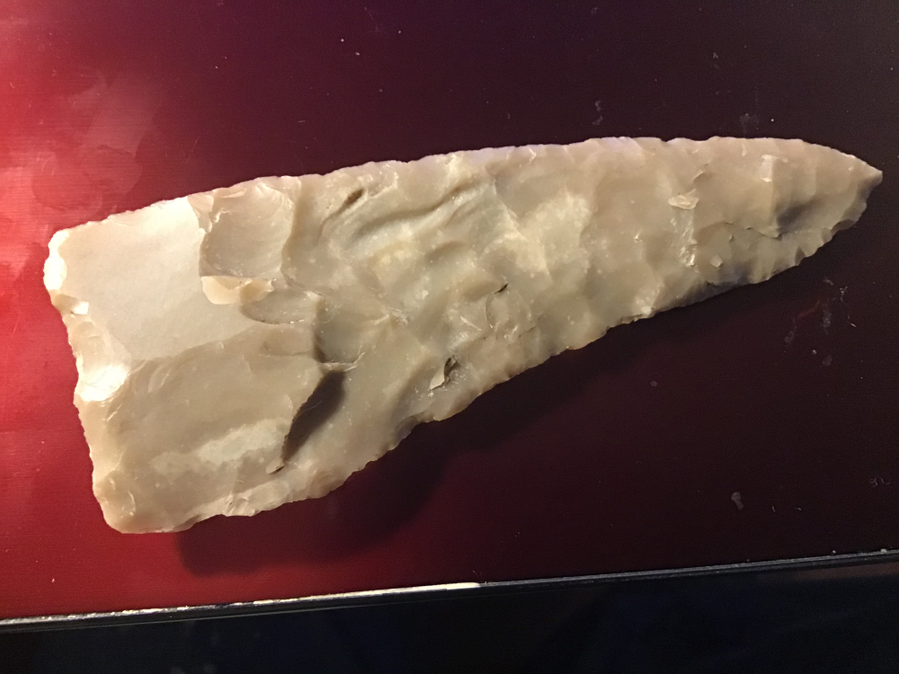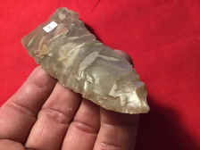 Recovered in Uvalde County - this Pandora Knife is thin with pressure flaked lateral edges-one side has a long flute like flake. It is Translucent Edwards. At 5.25 inches long, Edges show heavy use wear. it fits and looks nice in a frame. I have the shipping and will guarantee authenticity and satisfaction.