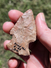 Fine Hopewell point that was legally recovered around Kinkaid Mound in the 60s. Very well made from pink fossiliferous chert and has a nice classic flare to the base. Measures 2 1/8 inches long, and is a great little point. Cool locale!