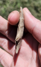 Fancy drill from Todd County, KY ex Dossett. Great little drill made from an exhausted point with wide flaring barbs. Measures 1 7/8 inches long. Will make a fine addition to your collection.