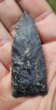 Very nice copena triangular blade found in Dickerson Cave in Todd County, KY. Well made little blade from a very cool locale. Measures 2 1/2 inches long.