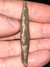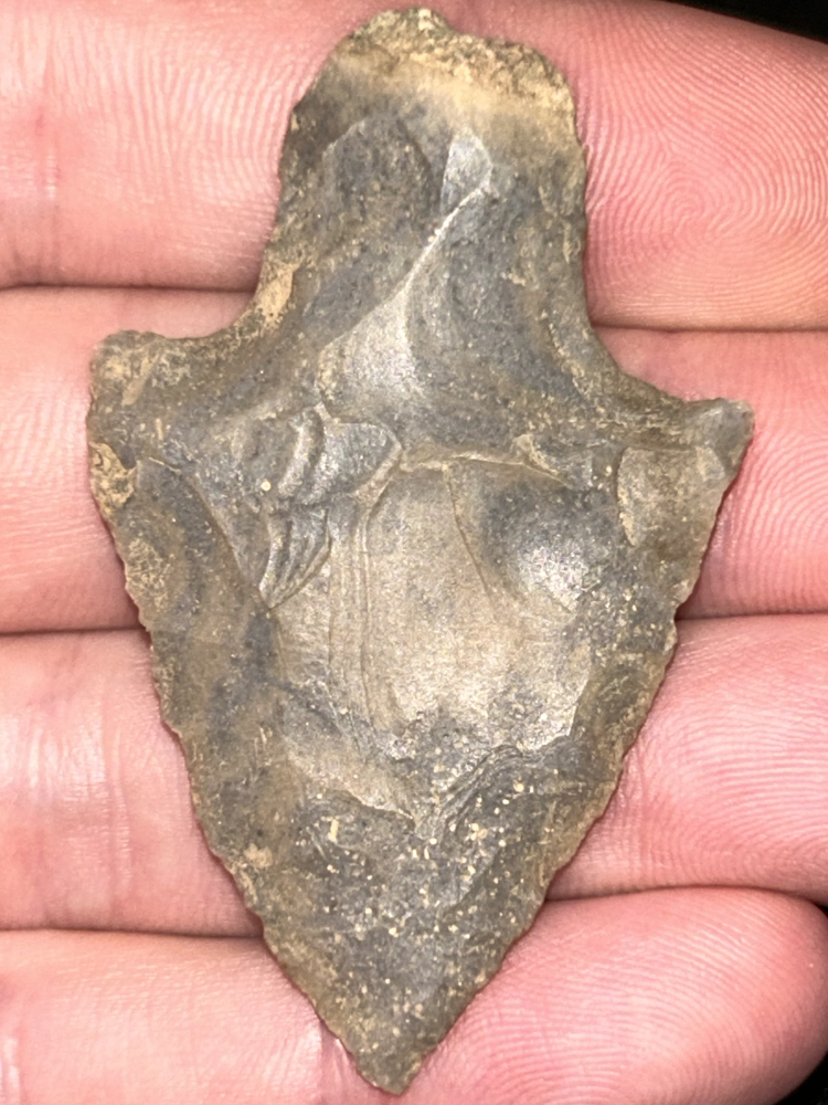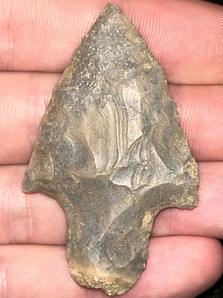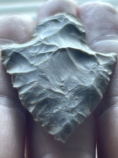 A super nice Adena found in Harrison County, Indiana. Made from well patinated mottled Hornstone. Nicely made with great form.