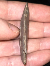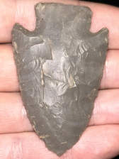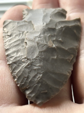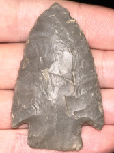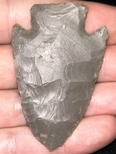 A fantastic Big Slough found in Harrison County, Indiana. Made from glossy medium grey Hornstone. Classic form with nice flaking and sharp tip.