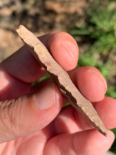One ear is worked shorter than other from multiple resharpenings, has a good bevel and a heavily ground base .