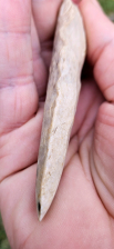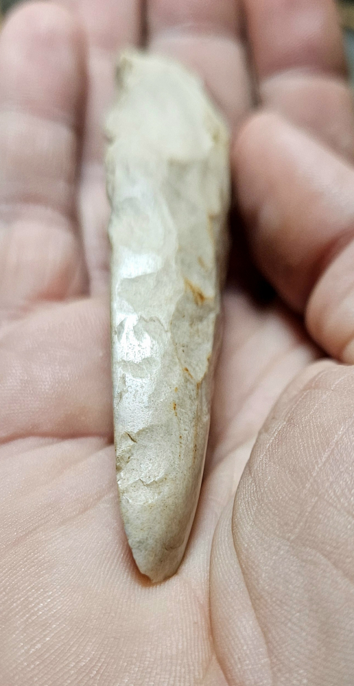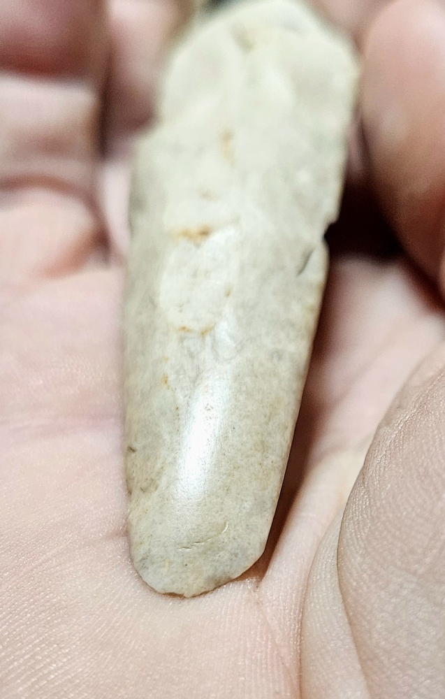 An epic Chisel that was legally recovered in Spencer Co, IN. Super well made with a lovely polish on the bit that extends down a ways. Don't see too many of these from the region, a real treat. Measures 3 1/2 inches long.