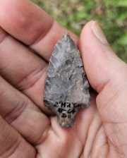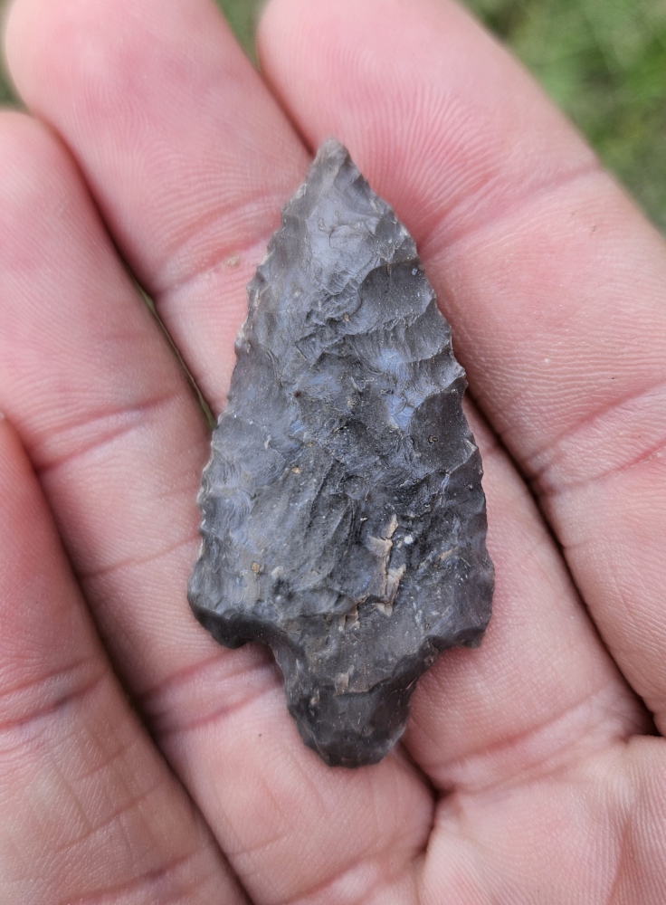 Super nice little Adena Vanishing Stem recovered in Todd Co, KY. Great workmanship on a glossy colorful chert. Measures 1 3/4 inches long. Nice affordable one.