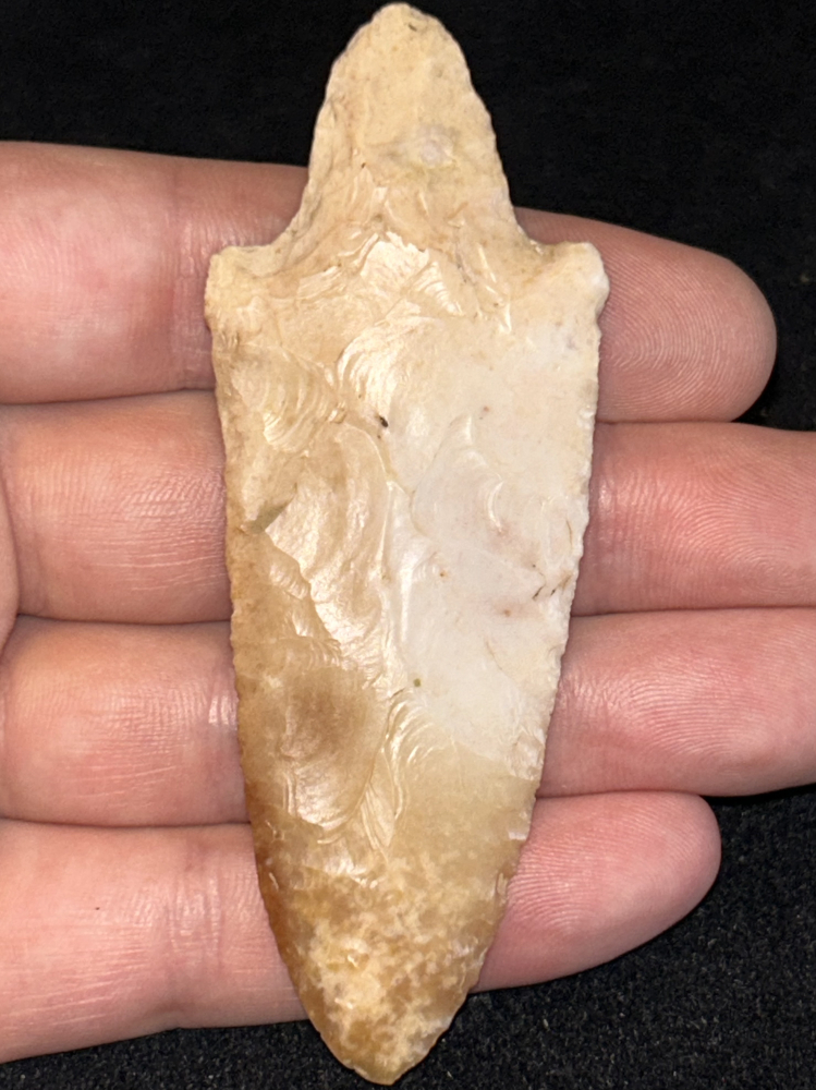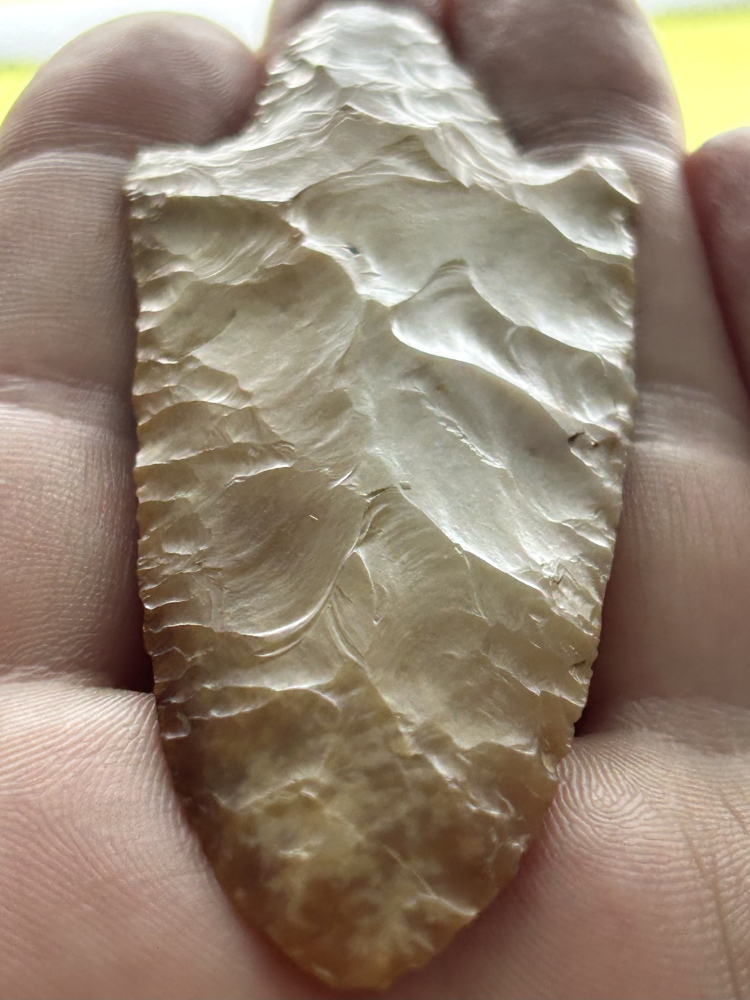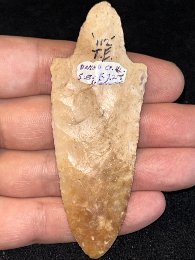 A wonderful Dickson found in Union County, Illinois. Made from Kaolin chert that is very glossy and translucent. Super thin with excellent flaking and workmanship.