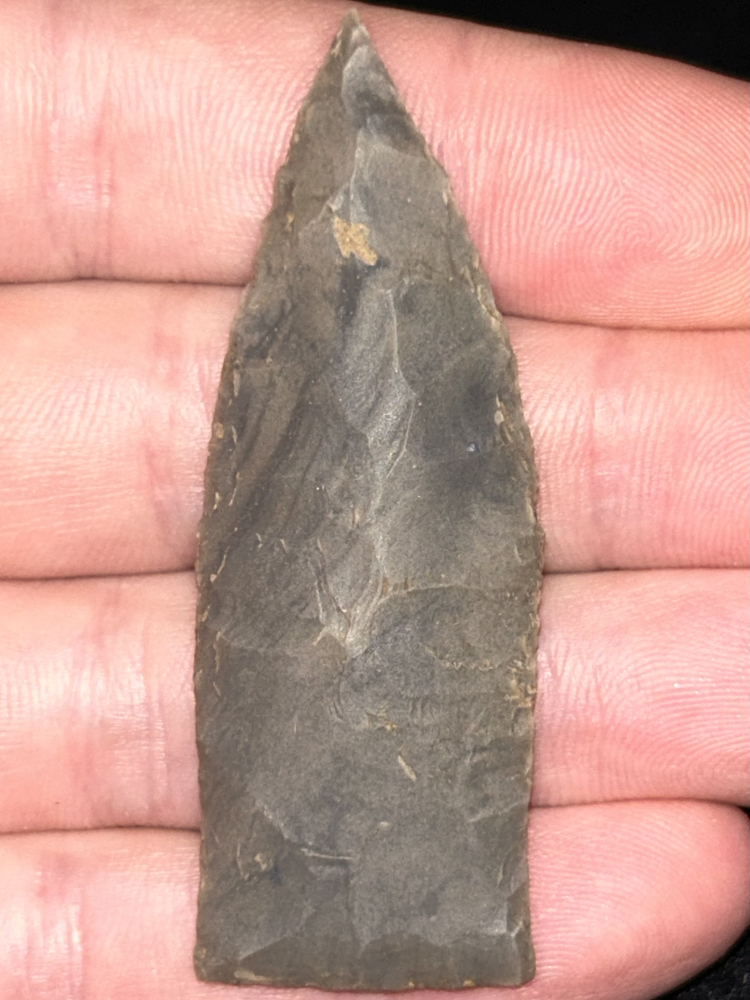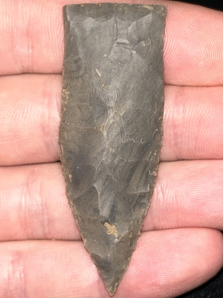 An outstanding Copena found in Stewart County, Tennessee. Made from semi glossy grey Ste. Genevieve chert. In perfect condition with superb workmanship, symmetry, and sharp tip.