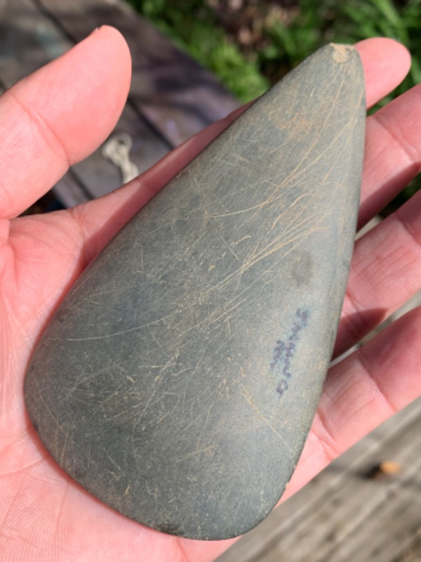 A 4 3/8” Greenstone Celt, this example has excellent bit and good form .