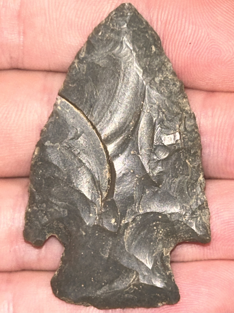 A nice Big Slough found in Harrison County, Indiana. Made from well patinated medium grey Hornstone. Nicely made with good form.