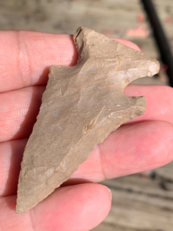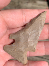 Made of gray fort Payne Chert, heavily ground base and well used, and has keep a very nice form to it .
