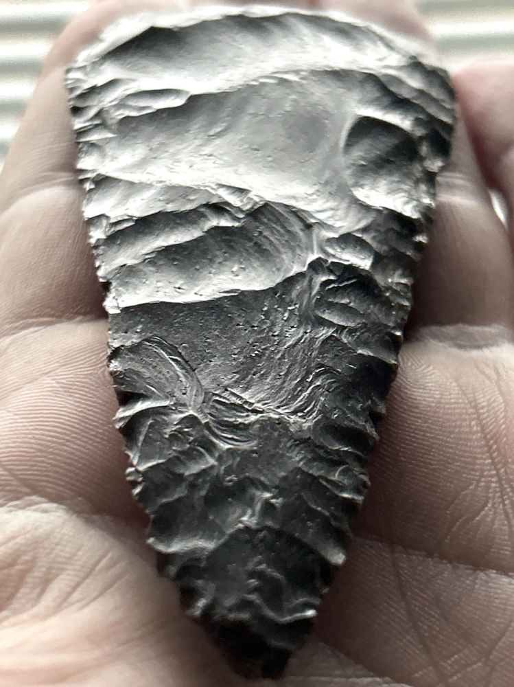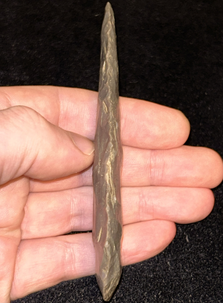 An outstanding Cobbs blade found in Posey County, Indiana. Made from very glossy grey Hornstone. In excellent condition with fine workmanship and form.