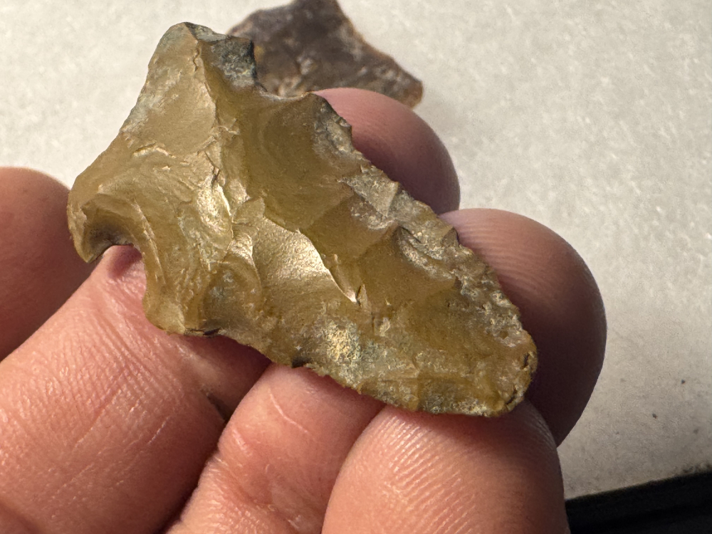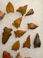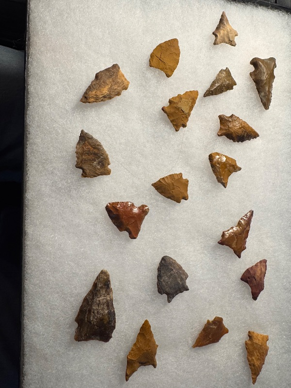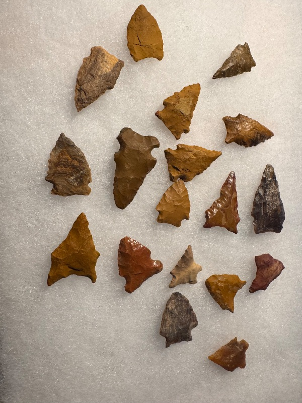 This is a good variety with a couple of nice petrified wood examples, one being siliconized Petrified Wood 18 points in all. There is a nice drill, a thin Pelican, and a nice wolf's head. All found by Mike Merrill near Toledo Bend, probably Sabine County. I have the shipping and will guarantee authenticity and satisfaction.