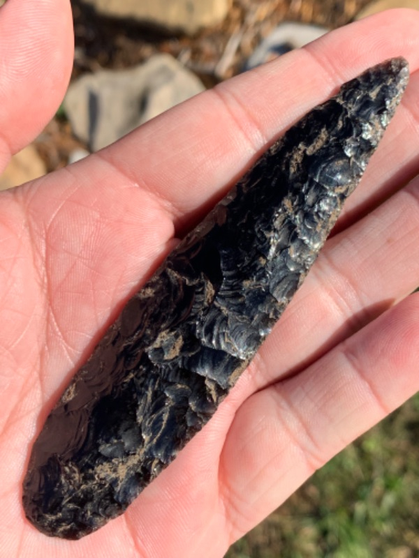 A 4 1/2”Obsidian Aztec Blade, a finely made