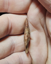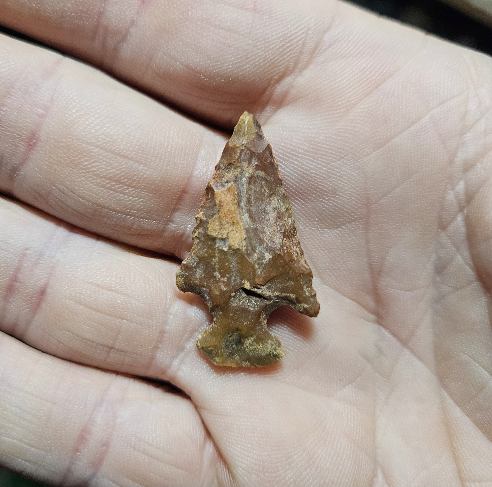 Choice Cienega point from Apache Co, AZ. Nicely made little point on a very pretty mottled reddish jasper. Measures 1 1/8 inches long.