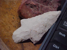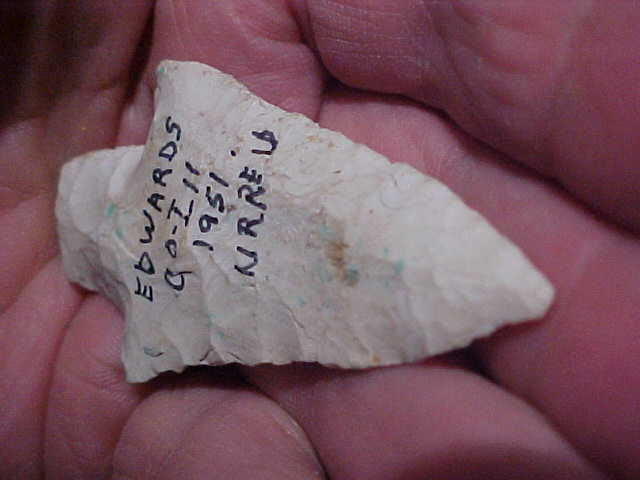 Shipping included on this 1951-found Edwards Co., Illinois, Burlington Chert Dixon--from the private museum of the late Norman Reid--caliper reads between 3&7/8" and 3&15/16" length by 1&7/16" width. The flint knapping is outstanding work, as is the patina--so long as I'm alive it's guaranteed authentic (and I plan to see 100, lol). Payment can only be one of three methods: checks, cash, or money orders. I do not use payment services like paypal--Roy A.