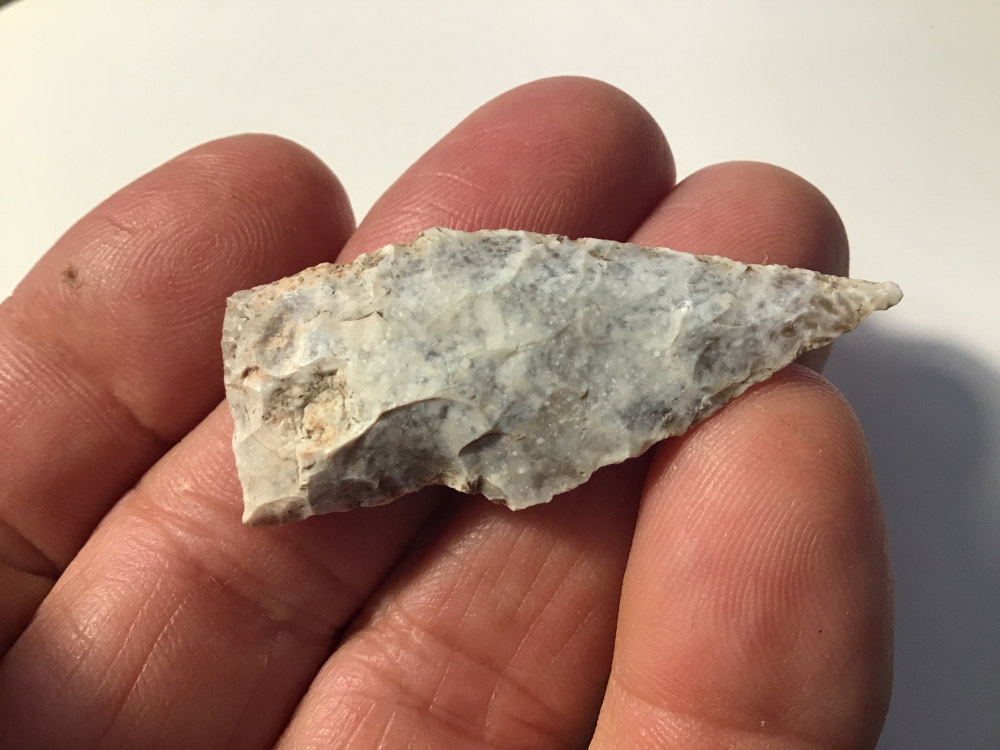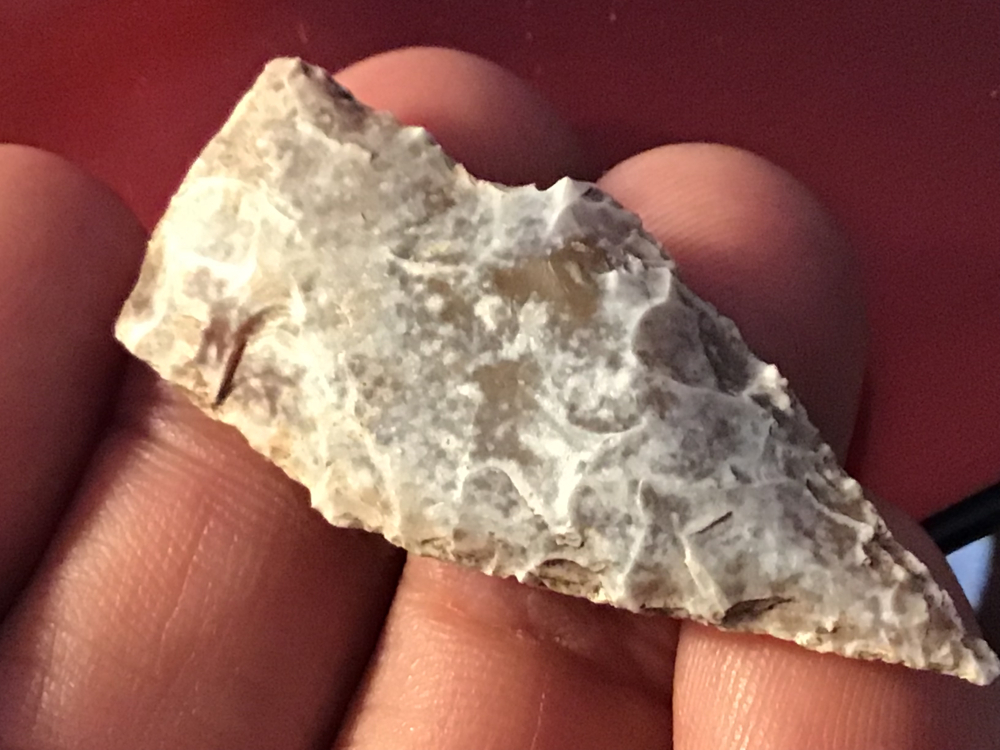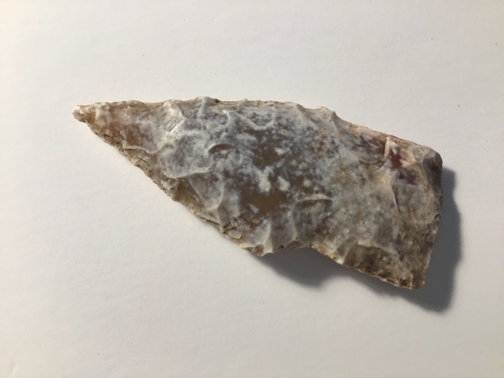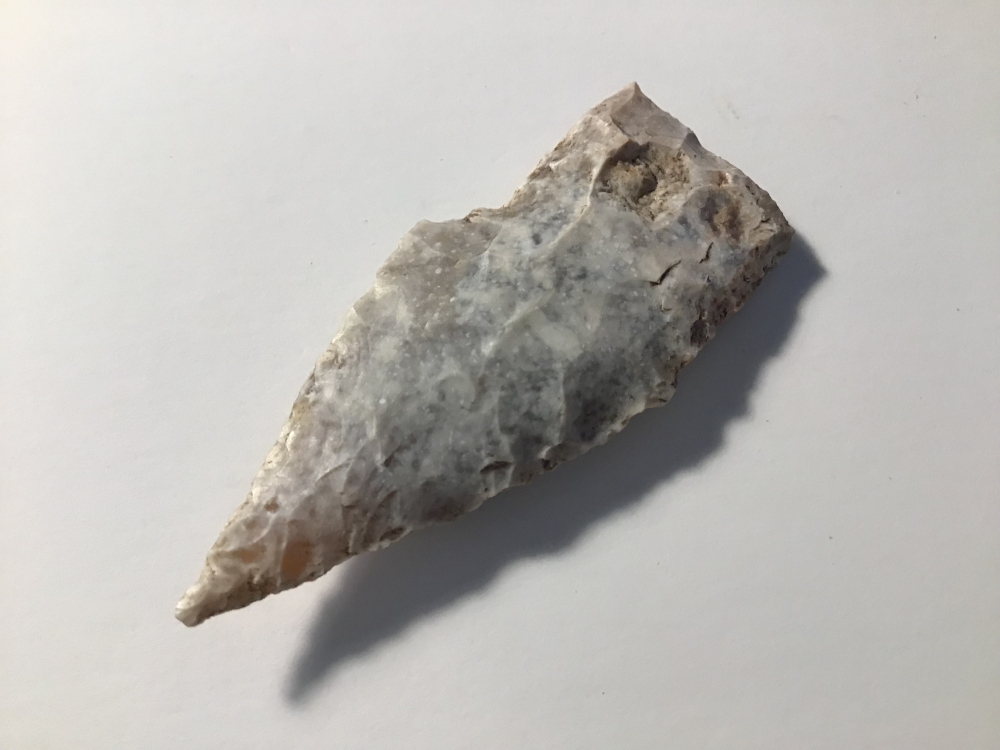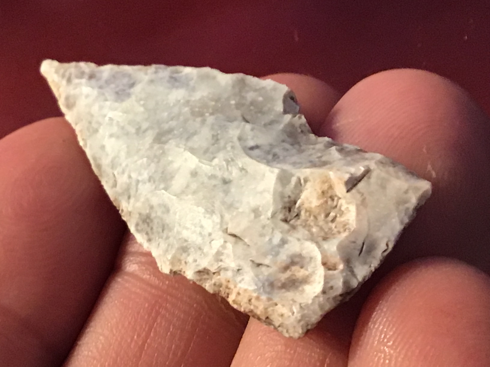 From the Onion Creek site in Travis County, this Travis point is highly patinated and semi-translucent -- a fine example from a well-known area. I have the shipping and will guarantee authenticity and satisfaction. Purchased from the finder. Sorry I have not been working the site. I have one more chapter in the book and I will have more time for the site.