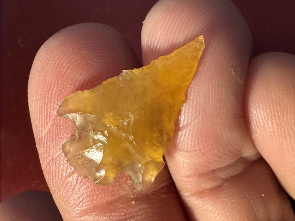 Recovered in Oregon, this Merrybell has nice barbs to a good tip made of quality Yellow agate. I have the shipping and will guarantee authenticity and satisfaction.