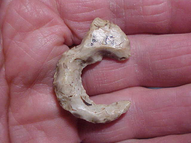 Back in my youth (as a new collector) in the early 1970s, goofy flint items like this flint fish hook (plus flint buffalos & flint thunderbirds) were flooding the market...not sure why, but the "Oh, now wait a minute" pieces like this have become 'collector's items'. I've seen collectors build whole cases of them, each person collects for their own reasons. Hey, some people collect "Grey Ghosts", those 1950s Edwards Plateau, Texas, flint blades made into giant fake 'spears'. Anyway, if you ever wanted a fake flint fish hook, shipping is $8.00, and I take payment only by cash, check, or M.O.--Roy A.
