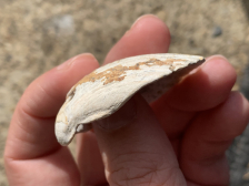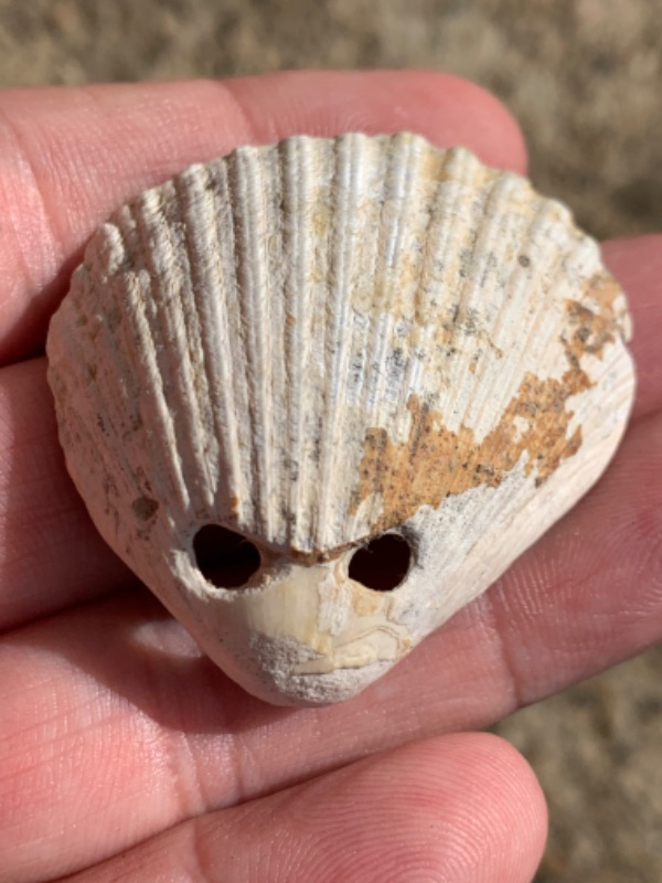 A 2 hole shell Gorget, this example is made either a small clam or scallop like shell .