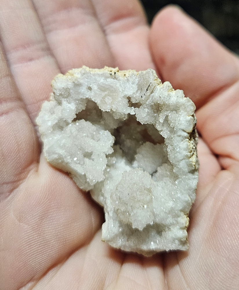 Very nice Geode from Northwest Africa. Very fine small clusters and druzy. Measures 2 inches. Nice little stocking stuffer, it will include a bonus shark tooth.