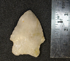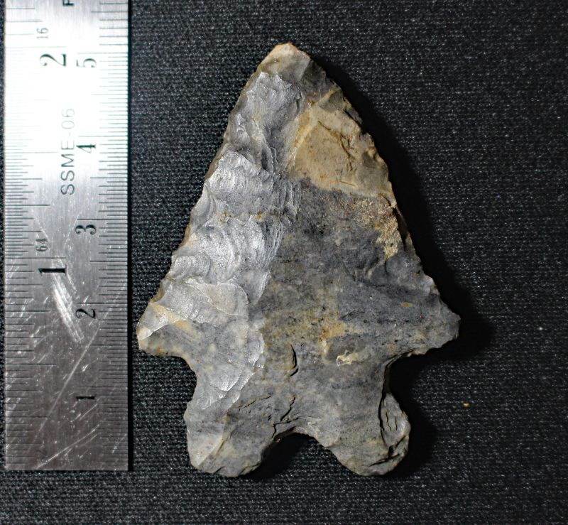 Ohio MacCorkle Bifurcate – Coshocton chert. 2 and 1/16th" long. Well-formed Early Archaic example with great symmetry and classic deep bifurcation. Excellent color and patina, This early archaic point is guaranteed ancient. Hard piece to beat for the price—displays beautifully and belongs in a top Ohio frame.Ex Lee Bailey, Ex Matt Dorso collection. Guaranteed authentic. $5.00 USPS shipping.