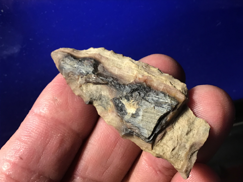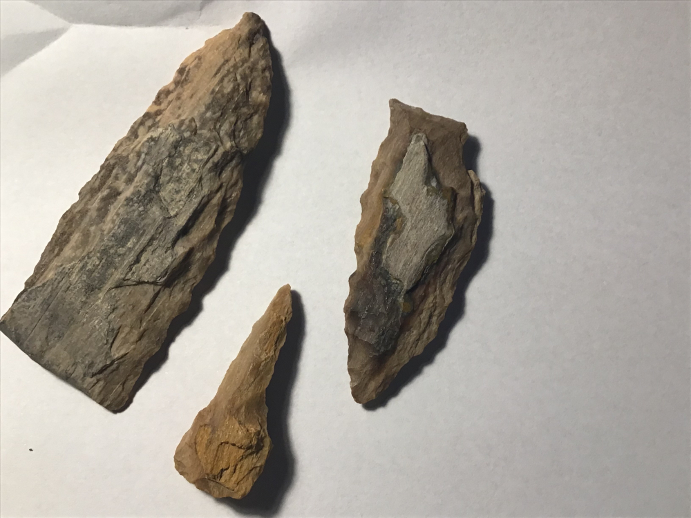 This is a great petrified wood knife. The base is not snapped, it is cortex. All three points are from East Texas, I believe Trinity county but I will have to check to make sure. Heavy use wear on all three. I have the shipping and will guarantee authenticity and satisfaction.