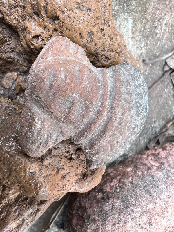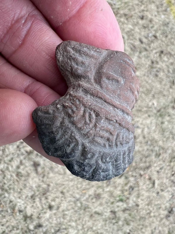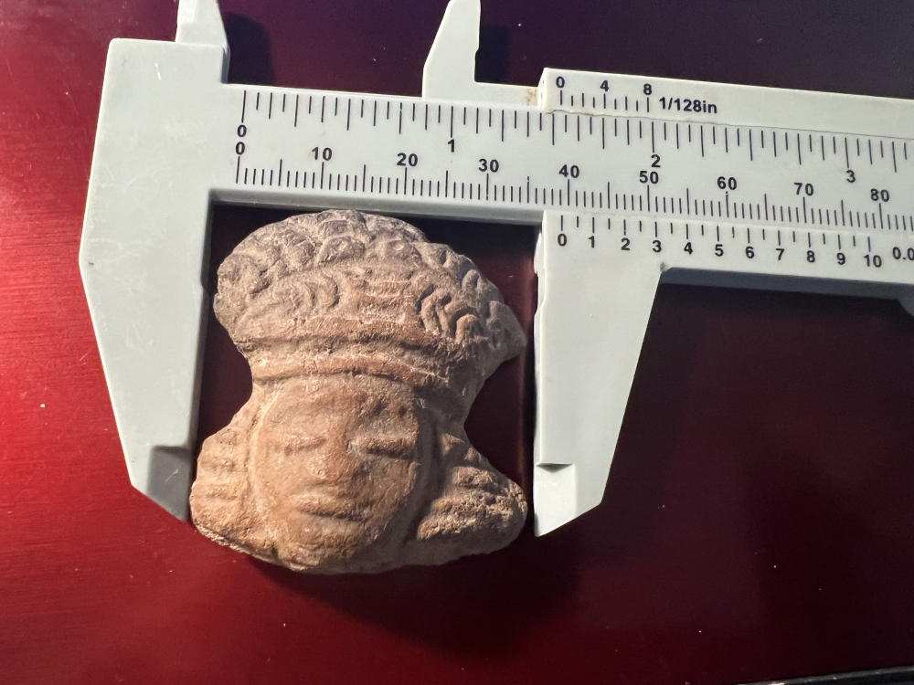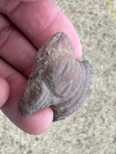 It is my understanding these were often thrown in fields for crop production. I am not so sure on this one. It may have been a decoration on a pot of some kind and broke off through use. I will guarantee it to be authentic and satisfaction guaranteed. I have the shipping.An