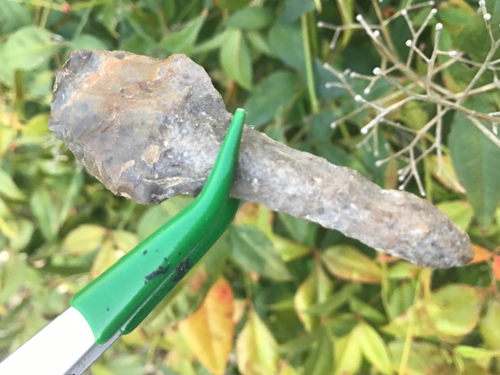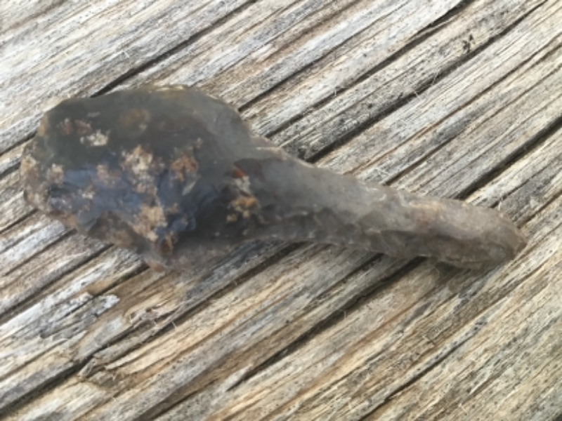 A fine drill from the Columbia River, could be Washington or Oregon. It shows heavy use wear and comes with a Bennett coa and Certificate of Origen. Made of colorful Chert. I have the shipping.