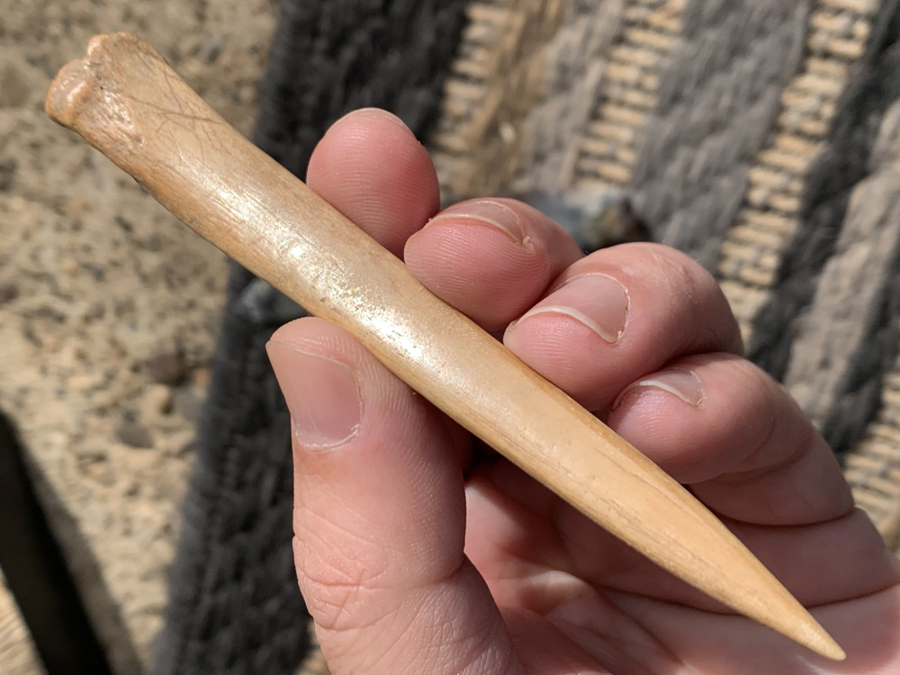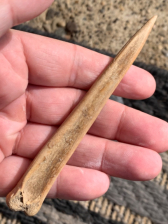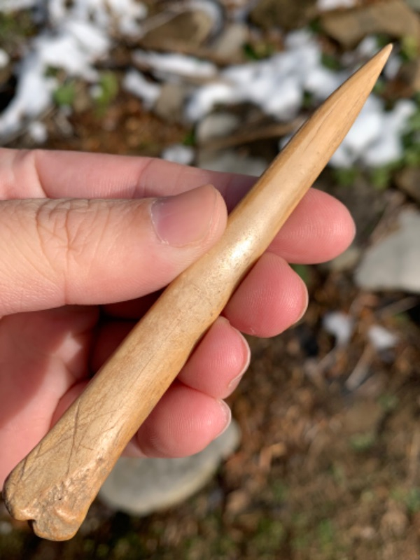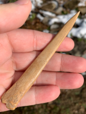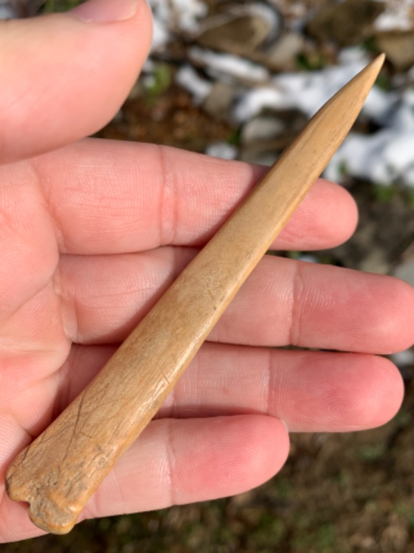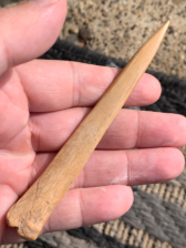 A 4 5/8” bone awl, this example has mirror polish on it , and is extremely well made example .