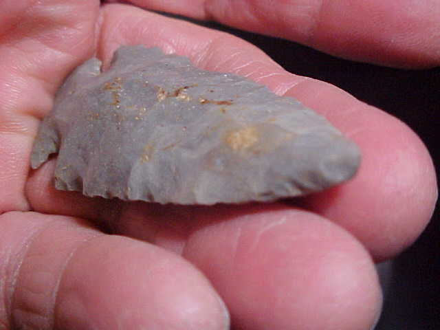 The price being only $15 (and USPS base charge of $8.00 shipping)--why so low? The Dovetail is absolutely real...and the tip is absolutely guaranteed "modern rechipped" off the one side--I think the seller I got it from sanded the new chips to make them feel use-slick. The Dove has spent probably twenty years in my collection, never tried to sell it because, well, the tip. Give it as a gift to some young collector, or sent it for restoration to a professional restorer--or try the restoration yourself, a good winter project. Made of Indiana Hornstone, found in Spencer County, Indiana, the point measures 2&7/16"--it may be a few sixteenths longer once it's restored--great basal grinding, excellent left blade edge bevel on each face. I welcome checks, cash, or M.O.s, but do not use paypal type payments--Roy A.