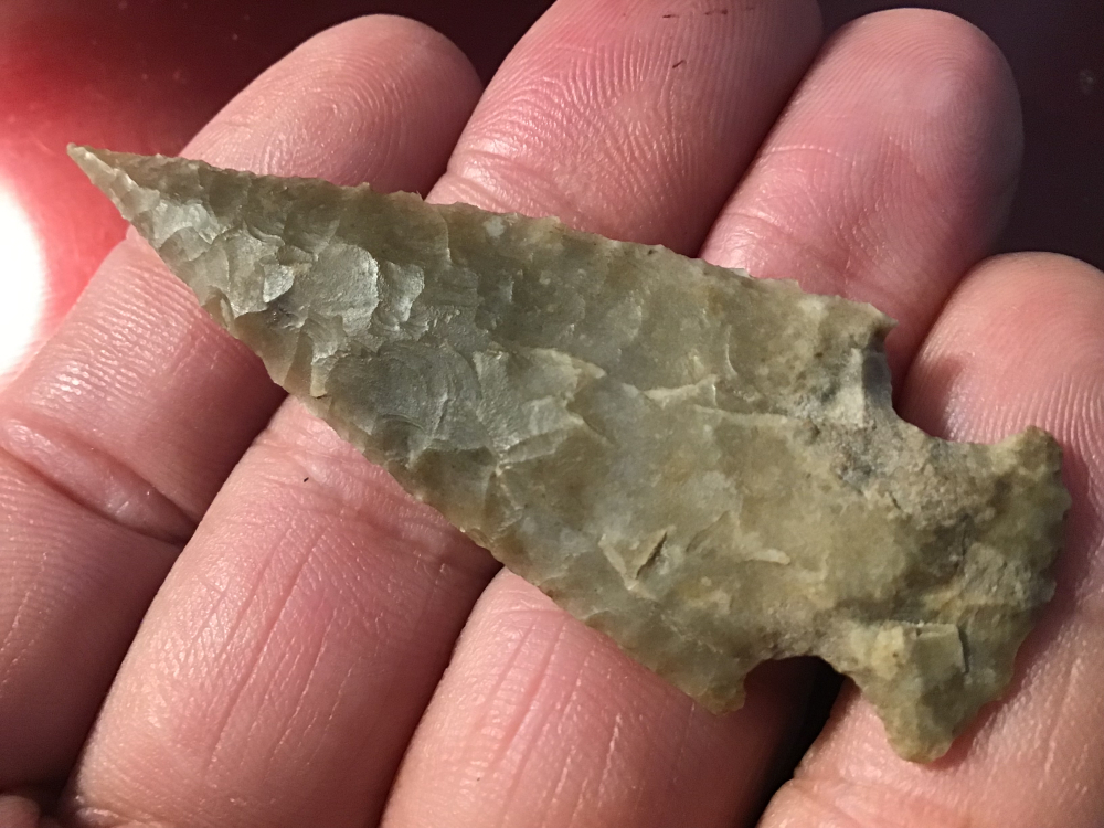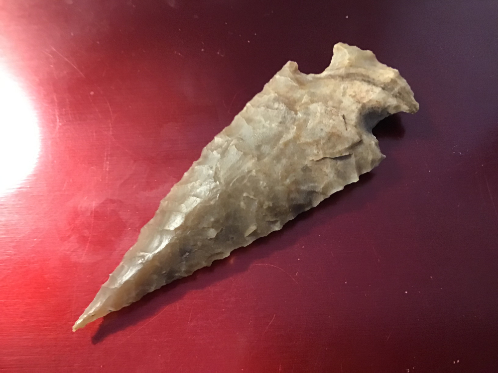 This is a fine Ensor made of Colorado River Gravel from Bastrop County. It has a needle tip, well flaked and a large point out of Heath Neyland’s collection. I have the shipping and will guarantee authenticity and satisfaction.