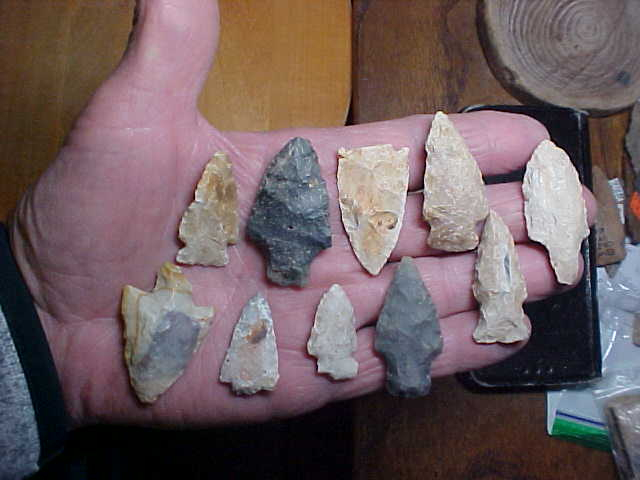 From a S.W. Indiana collection, Vanderburgh and area counties, these ten represent a number of different cultures and a number of area cherts--what they have in common is that they're 100% real. When I print out the item description for the next collector to own them I'll write in the culture which made each piece--and the flint if can be identified--if they're going to a 'new collector', having a good start on learning what each was for, the appx age, it's a starting point for learning more. Shipping is included with the price, checks or money orders are how I take payment as I do not use paypal-type electronic payments--Roy A.