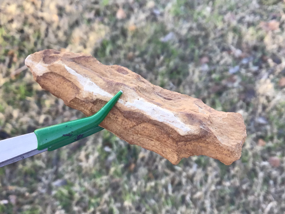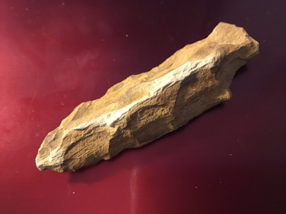 This is a brightly colored petrified wood knife recovered near Toledo Bend Reservoir. Wood grains are clear and edges show use wear. I have the shipping and will guarantee authenticity and satisfaction.