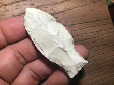 White Chert Travis found by David Shand near Wimberly in Hays County. It has heavy patina with mineral deposits on the blade.with a straight base. I have the shipping and it comes with a Bill German COA.
