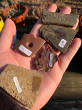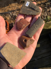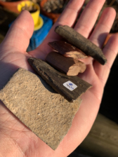 Includes one of limestone, two made of Cannel coal one was used as a awl sharpener at some point , and two made of claystone .