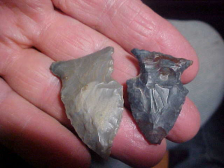 All three are differing shades-and-grades of Indiana Hornstone. These three, Hopewell in origin, are out of a Pike County, Indiana, collection, and several--four or five--in my collection. REAL, period. Not a one shows basal grinding, so my assumption is the finder was actively hunting a Hopewell site somewhere along the very twisting/ turning Patoka River--good points, longest is 1&3/4". Shipping is $8.00, checks or M.O>s are welcomed, but paypal is not used on my store--sorry--Roy A.