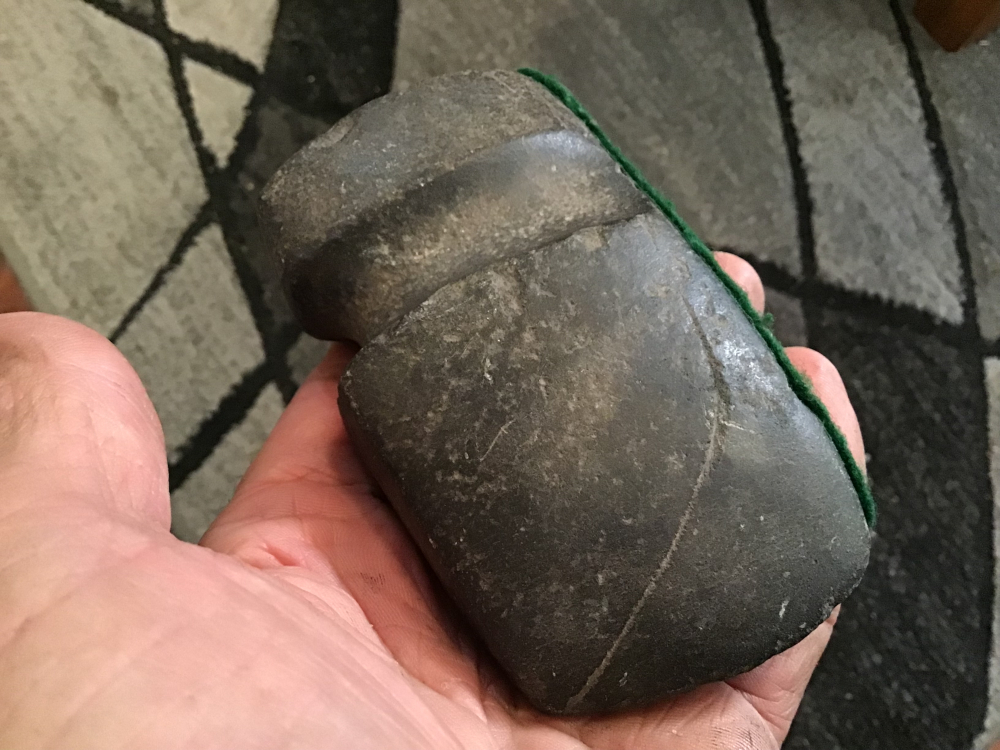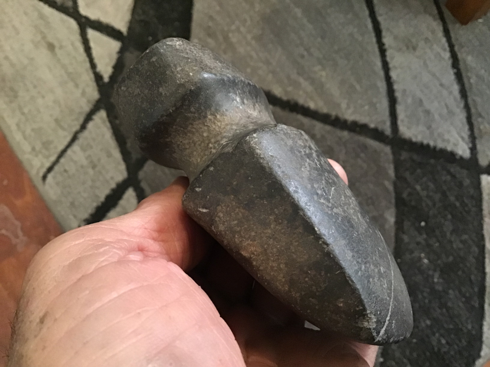 This 3/4 groove Axe is well shaped with some use wear, but in good shape. Someone put felt on the bottom for display purposes. It will come off with a soak. I will guarantee authenticity and satisfaction.