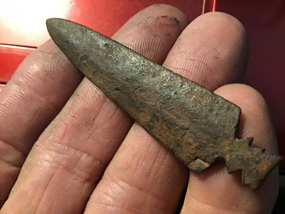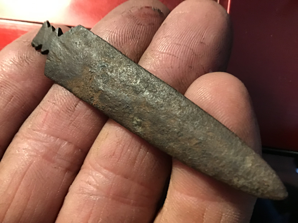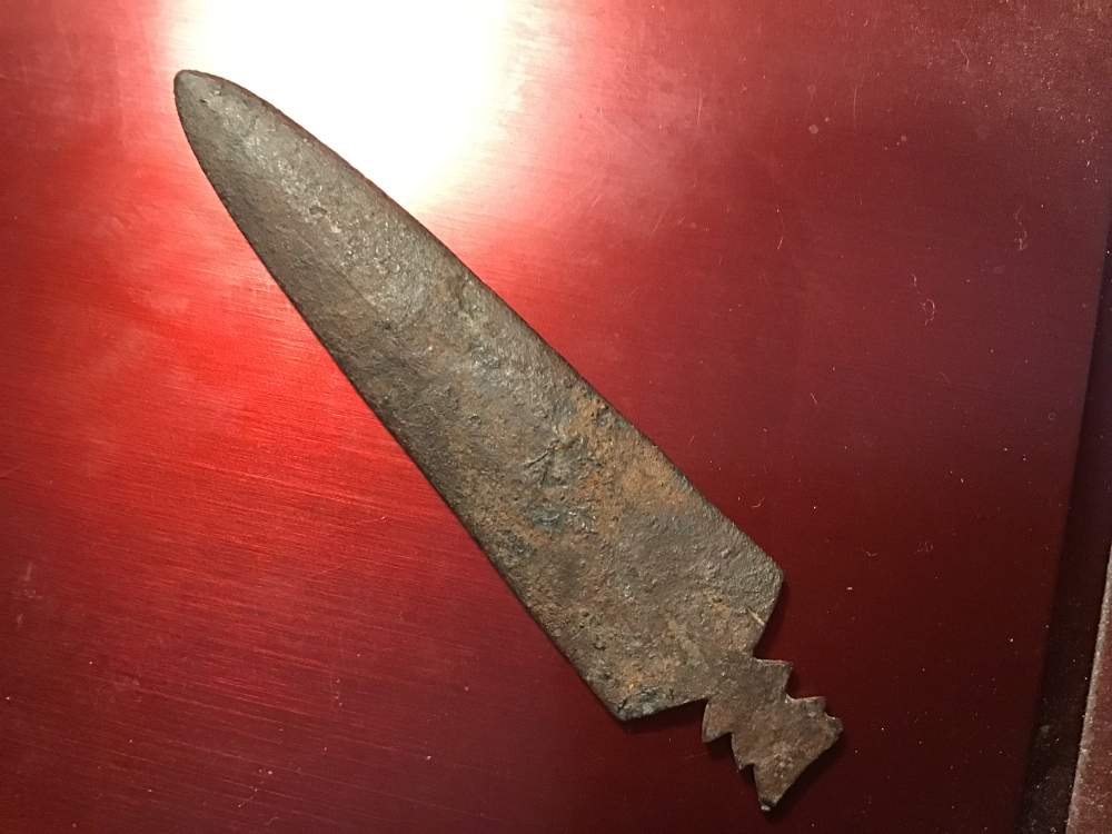 From the Northern High Plains, this metal arrowhead/Spear point has a fine tip and just under 3”. Some rust pitting but not bad at all. It comes with a Bill German coa. I have the shipping.