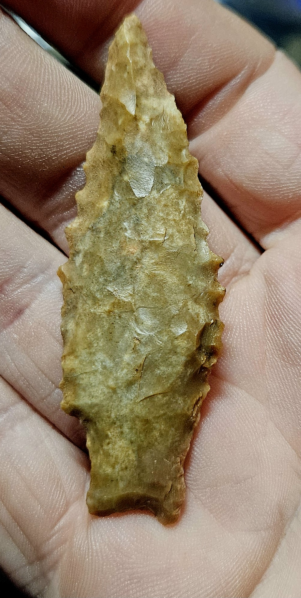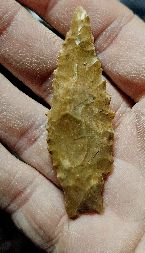 Fine San Jose point from Apache Co, Arizona. Nicely made and super serrated from great material. Hard to beat western materials. Measures 2 1/2 inches long.