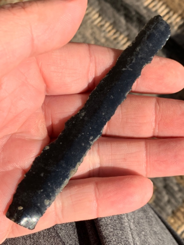 A 3 1/8” Obsidian Bladelet, this example is large and nicely made example .