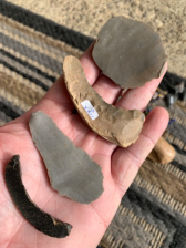 Includes a Hornstone flake blade with a scraper end, a large scraper made on a flake of Hornstone