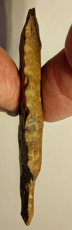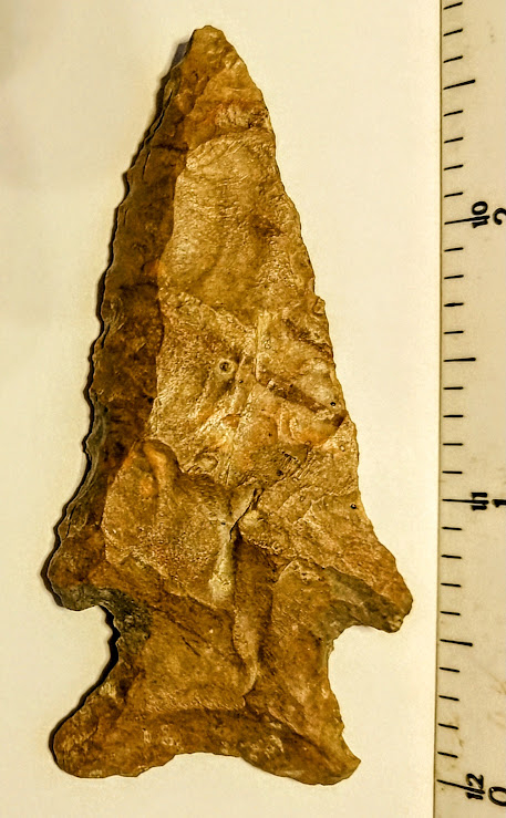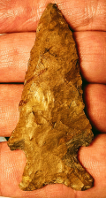 This well-made, beveled Turin point is a great artifact for all you type-collectors. It's made from a fossiliferous chert and was found in Hardin Co., Tennessee. It comes with a Dwain Rogers COA. Turin points that are this well-made are hard to come by.