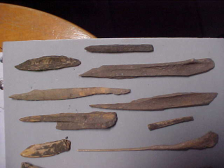 What was it going to be--that's the question with this hornstone preform, barely crosses over 2&3/8" by 1&1/4". The quality of the knapping, you'd think it has to be Early Archaic Culture, but that really long tip, that's almost 'diagnostic' of Woodland workmanship. There isn't a stem fashioned, so you'd think cornernotching would have been the next step--that leaves me with a "think is was going to be" a Wade or Buck Creek-type point--where the cornernotching would have left a short stem (and barbs) The piece is a creek find, still has dirt on the 'down' face--also, the find has been in a Vanderburgh County, Indiana, collection, it's guaranteed authentic. Shipping is $7.00, checks, cash, or M.O.s are the ONLY WAYS I take payment--Roy A.
